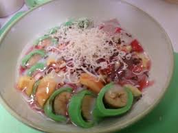 5. sajikan didalam mangkuk dengan tambahan es serut, sirup, susu kental manis, dan keju dan meses.